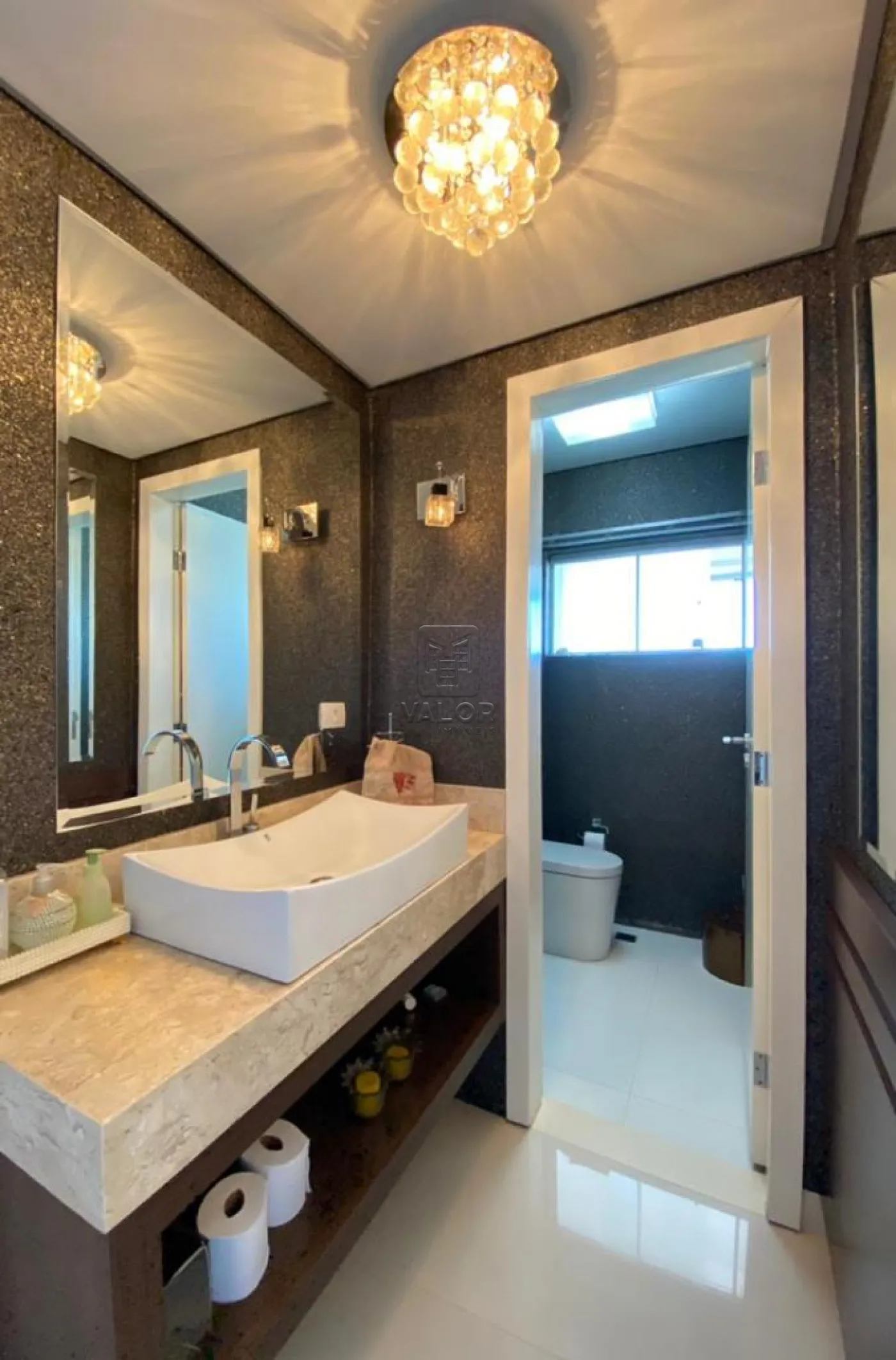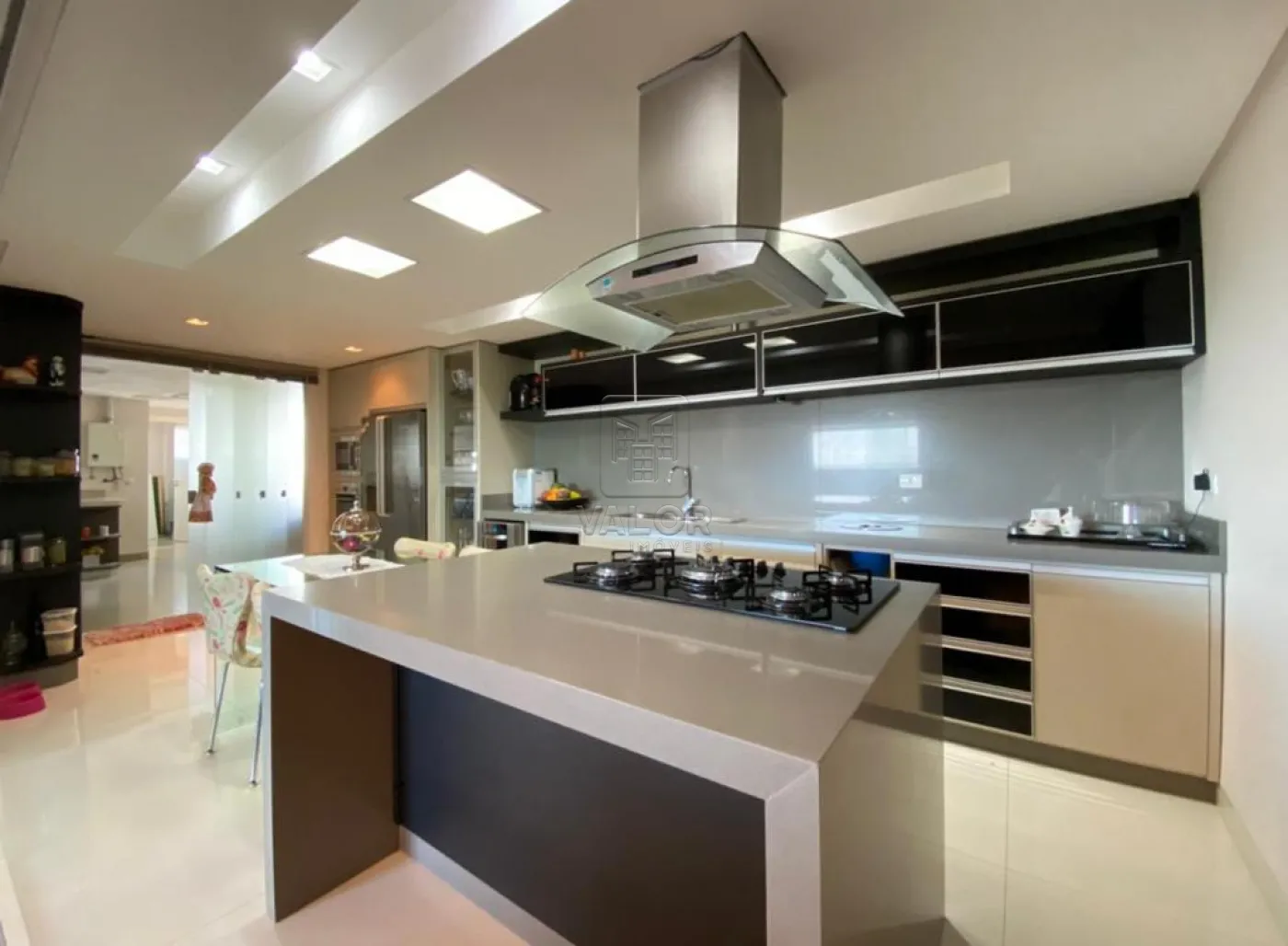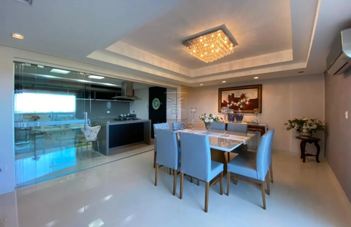 O Apartamento cobertura contendo três suítes sendo uma master com closet, dois lavabos, sala de jantar e estar integradas, sacada com churrasqueira, cozinha, despensa, lavanderia e duas vagas de garagem. Todos os cômodos com móveis planejados.