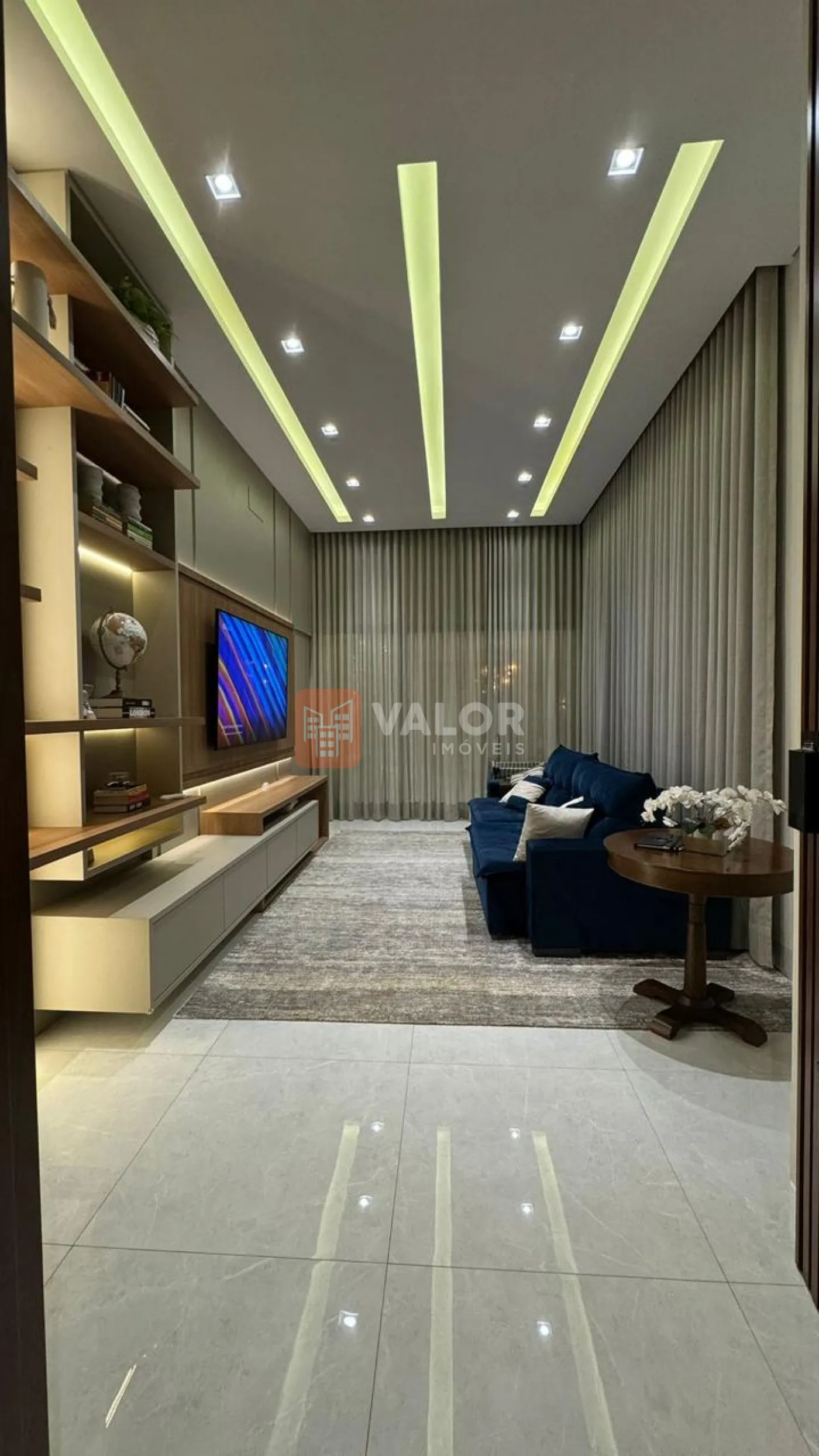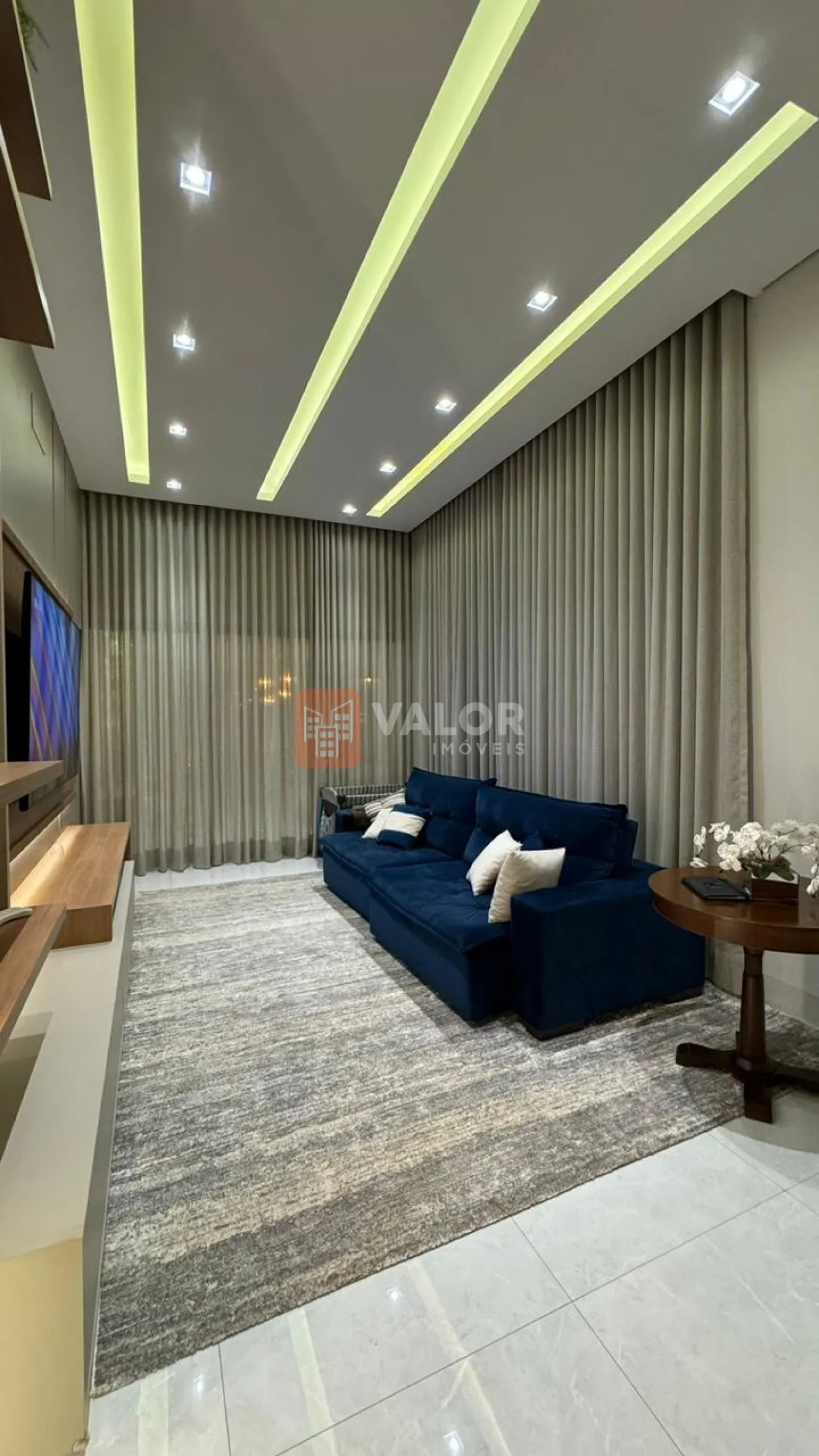 Sala de TV com pé direito duplo;