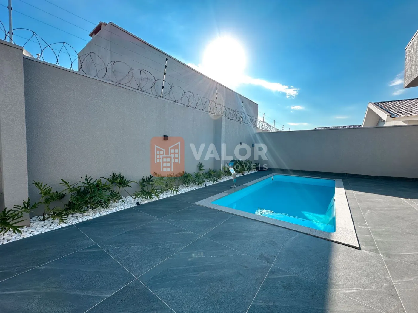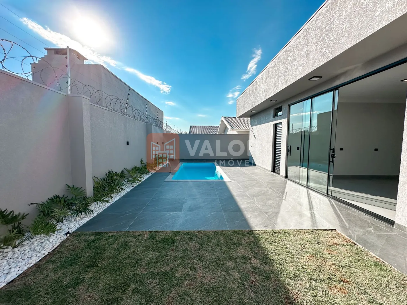 Imponente arquitetura neoclássica e integração são os destaques desta linda casa no Villa Viccenza, o condomínio do marco zero da cidade. Logo na entrada um luxuoso hall e enormes janelas, que trazem a essa residência muita luminosidade. Os ambientes da área gourmet com portas e janelas que abraçam a encantadora área externa com piscina e quintal. A residência conta com seguintes ambientes: 3 Suítes, sendo: 1 Suíte master com closet, BWC conceito SPA (ducha dupla de teto) + 2 suítes normais; Corredor íntimo de acesso aos quartos, com roupeiro atendendo as 3 suítes; Sala de TV/Estar; Sala de jantar, comportando uma mesa de 8 lugares; Churrasqueira à carvão; Piscina com espaço de deck para cadeiras; Lavabo atendendo as áreas comuns da casa (na área gourmet); Garagem com 2 vagas paralelas; Corredor de acesso de serviço (independente da entrada principal da casa); Lavanderia; Despensa/depósito; Estendal/gás; Casa de máquinas com depósito para ferramentas. Detalhamentos sobre a casa: Água quente com aquecimento solar; Infraestrutura preparada para energia solar; Infraestrutura preparada para carregador de carro elétrico (garagem); Todos os revestimentos da casa são 1ª linha da Eliane, incluindo grandes formatos 80×80; Louças e metais são 1ª linha da marca Docol; Janelas em alumínio com persiana integrada (automatizada no controle remoto) apenas suíte*; Portas de madeira são 1ª linha da marca Sincol ? Com acabamento industrializado, agregando maior durabilidade e cor uniforme; Luminotécnico padrão ? Todas luminárias em LED; Forro de gesso nas áreas internas ? liso ? entregue junto com a casa. Agende já sua visita com a Valor Imóveis e encante-se por essa casa!