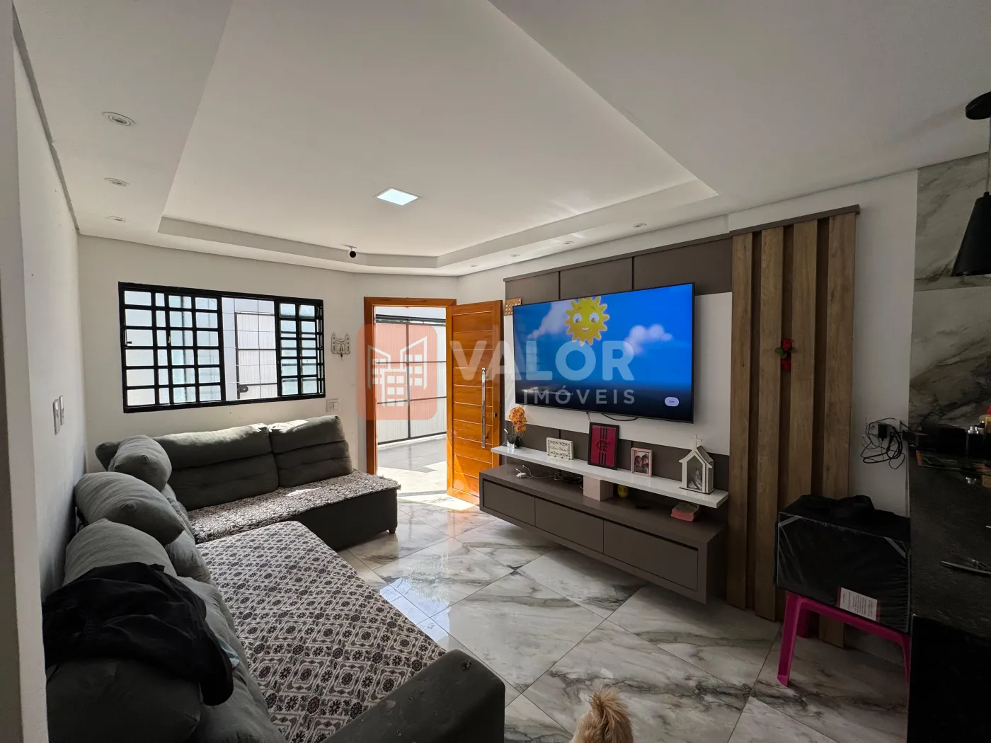 Sala de estar com home planejado;