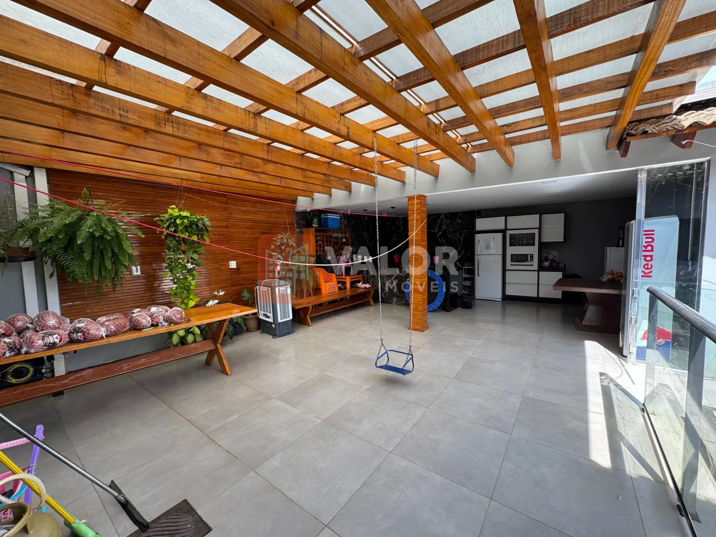 Garagem coberta.