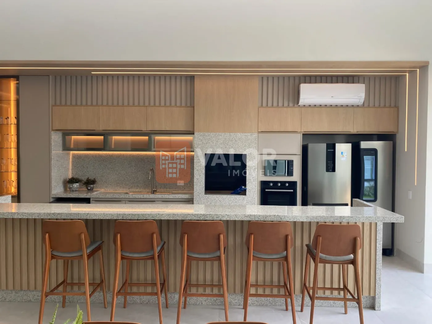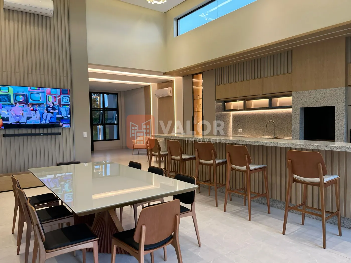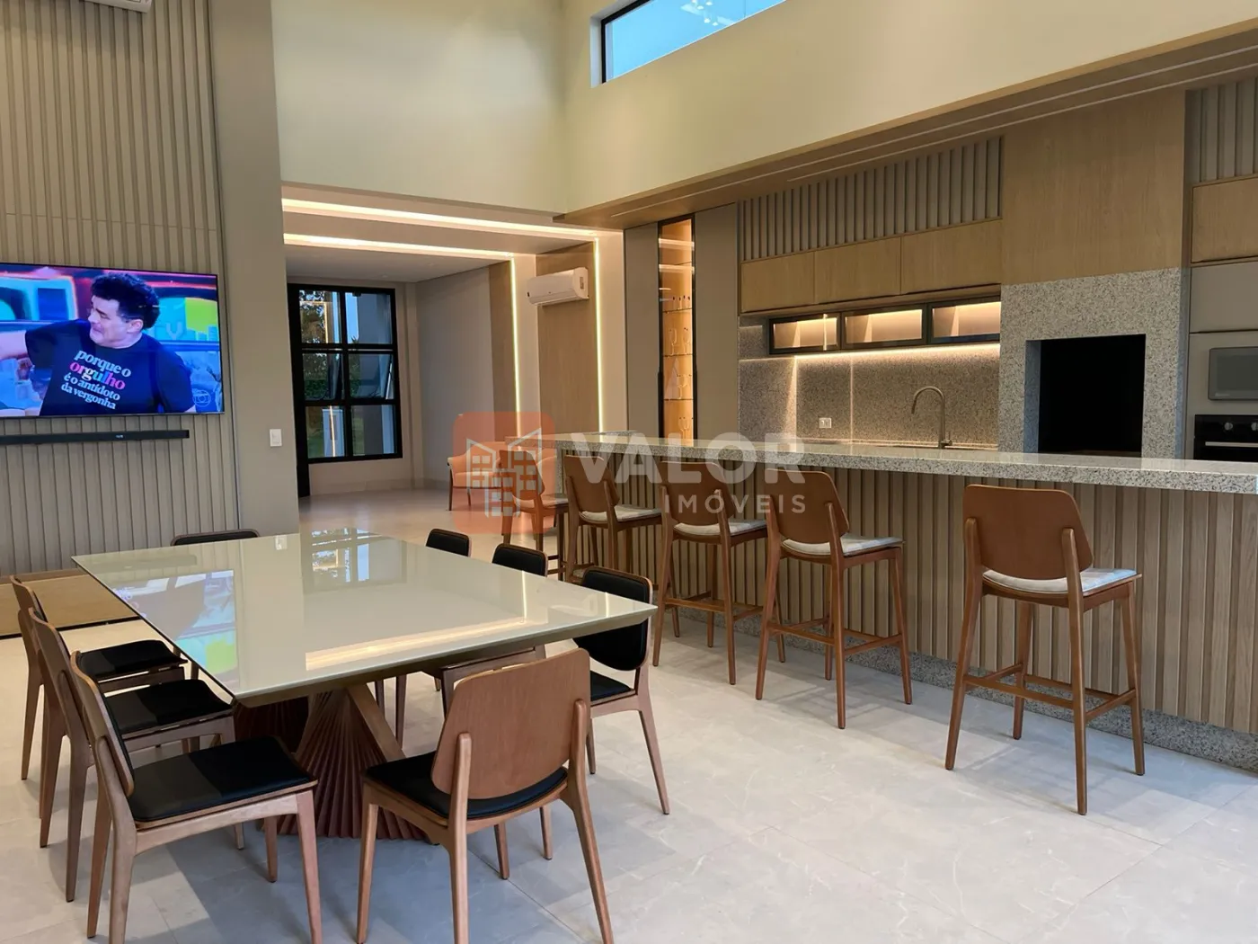 Na área gourmet contém , mobílias , fogão, forno elétrico, microondas, geladeira, refrigerador zero graú, adega de vinho, mesa de cozinha com 8 lugares, sistema de som instalado, ar condicionado em todos os cômodos, tvs em área gourmet, sala, decorada, pronta para habitar confortavelmente.