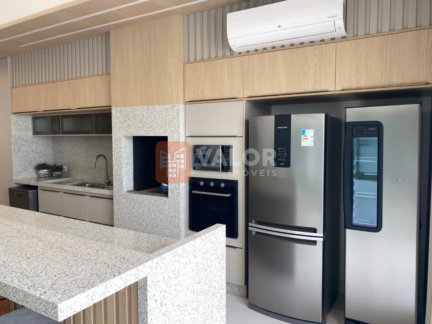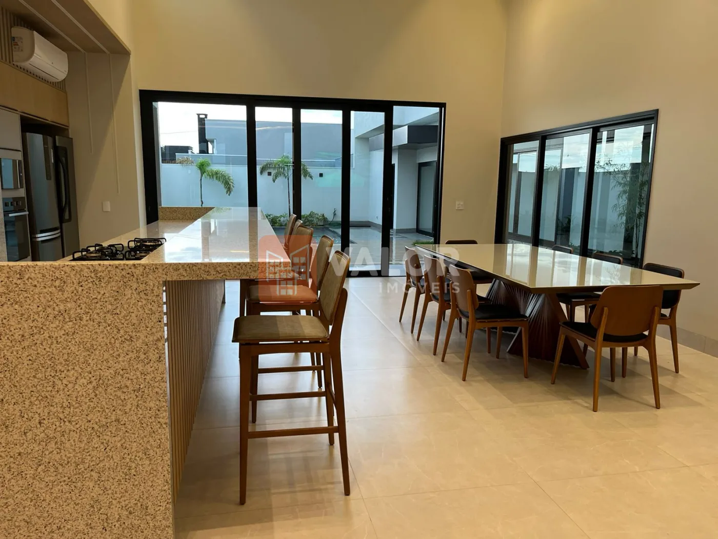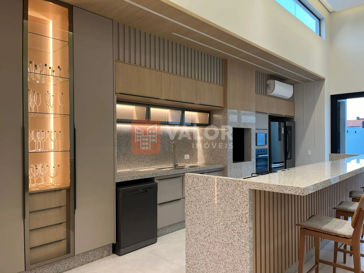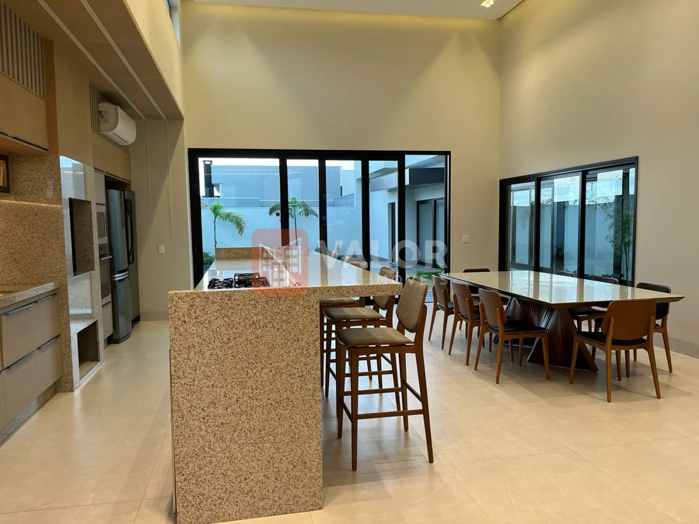 Na área gourmet contém , mobílias , fogão, forno elétrico, microondas, geladeira, refrigerador zero graú, adega de vinho, mesa de cozinha com 8 lugares, sistema de som instalado, ar condicionado em todos os cômodos, tvs em área gourmet, sala, decorada, pronta para habitar confortavelmente.